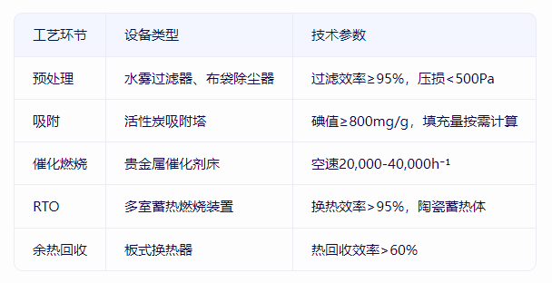 RTO装置:废气预热后进入燃烧室(750-850℃),氧化VOCs,利用蓄热陶瓷回收热量(热效率>95%)。