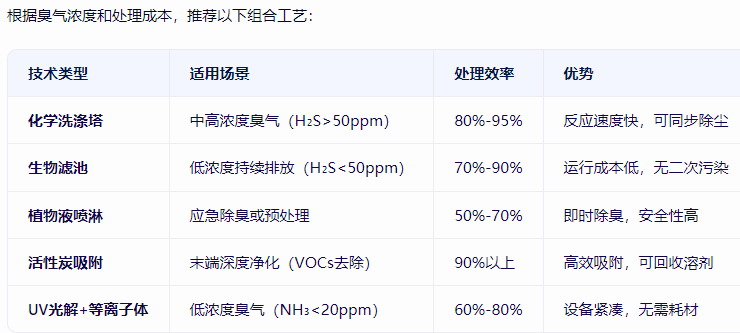 根据臭气浓度和处理成本,推荐以下组合工艺: