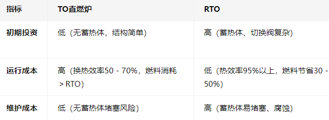 TO直燃炉与RTO(蓄热式热力焚烧炉)是VOCs治理主流技术,经济性差异如下: