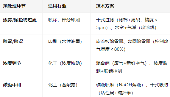 预处理目的是去除干扰物质、调节废气参数,避免TO内堵塞、腐蚀或燃烧异常: