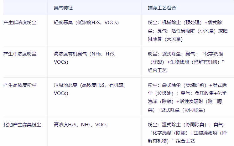 垃圾处理场景(转运站、堆肥厂、焚烧厂)的粉尘与臭气特征差异大,工艺需针对性匹配: