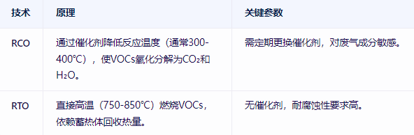 RCO(蓄热式催化燃烧)和RTO(蓄热式热氧化)是两种常用的VOCs(挥发性有机物)处理技术,其适用范围的区别主要体现在废气特性、处理效率、运行成本及适用场景等方面。以下是具体对比: