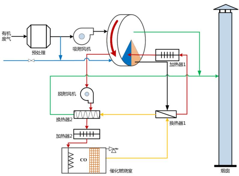 特点:高效吸附、连续运行、适用范围广,特别适用于低浓度、大风量的VOCs废气处理。