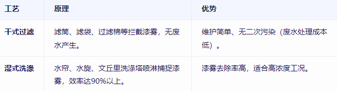 漆雾(颗粒物)会堵塞后续处理设备,需优先去除,常见方法: