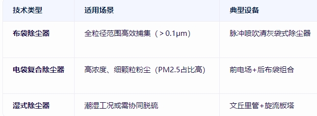 除尘:布袋除尘、湿式电除尘(针对石墨、金属粉尘)