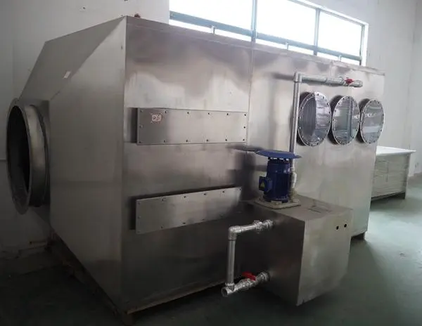 喷淋洗涤:喷嘴将液体(水或化学试剂)雾化,形成液膜或液滴,吸附废气中的颗粒物、酸性气体(如SO?、HCl)、有机挥发物(VOCs)等。