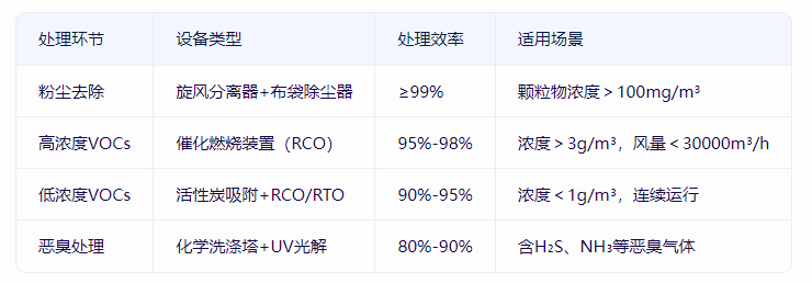 催化燃烧(CO):300-400℃催化分解,转化效率>95%。