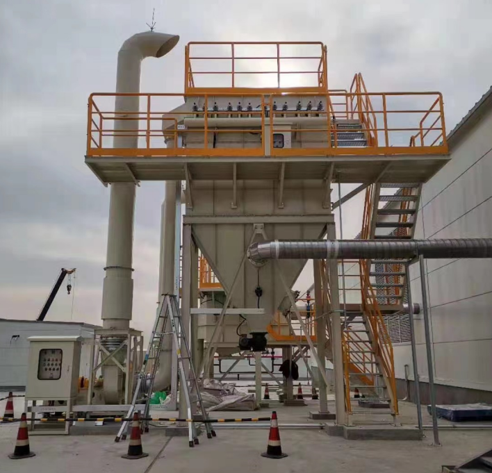 过滤工况:含尘气体由进气口进入装有滤袋的过滤室。滤袋的过滤作用将粉尘阻隔在滤袋外表面,净化后的气体穿过滤袋进入上部箱体,经排风管道、由风机排入大气。